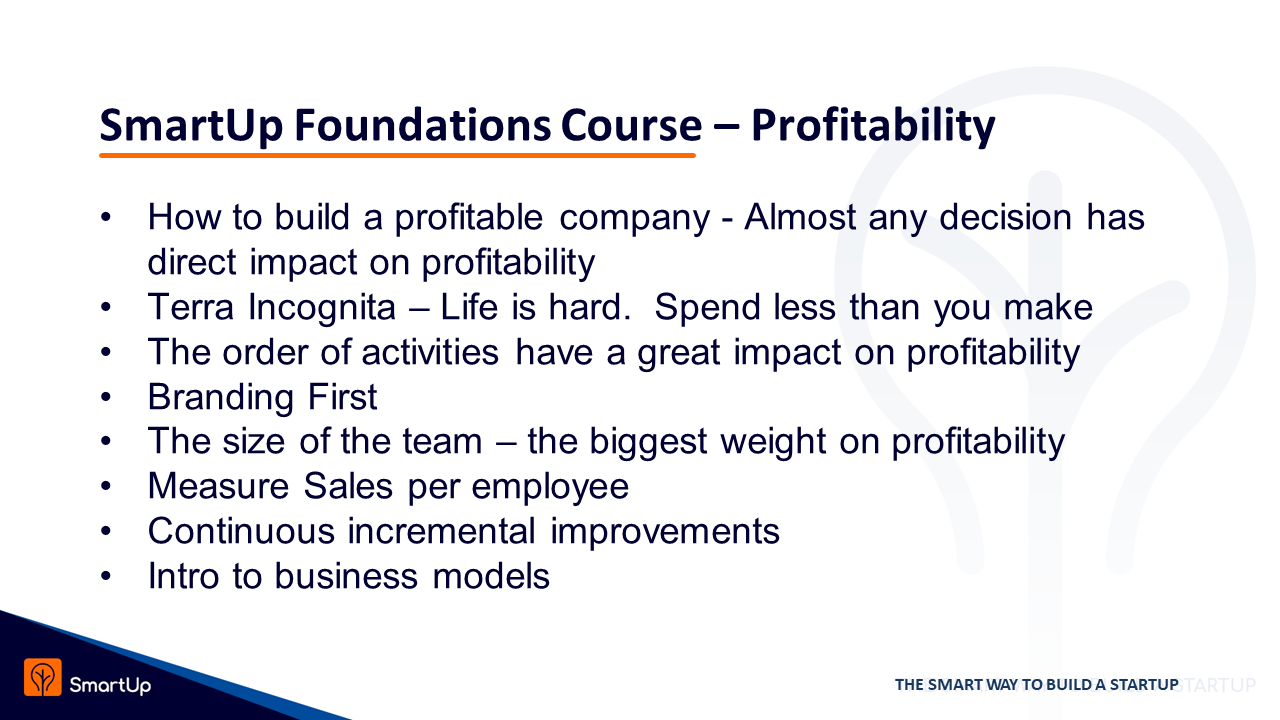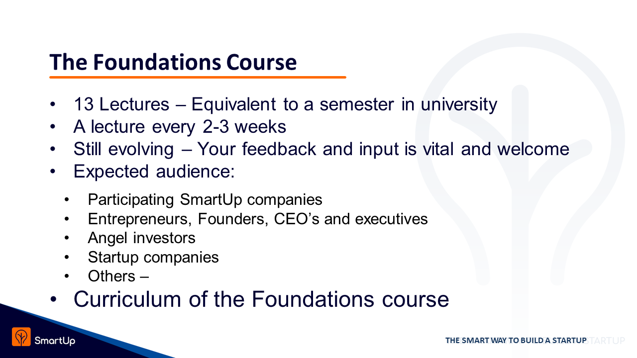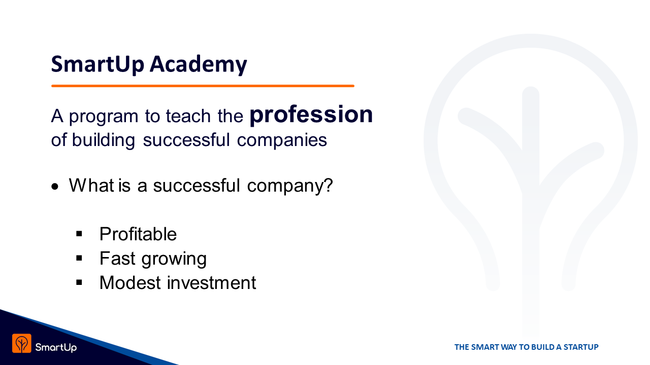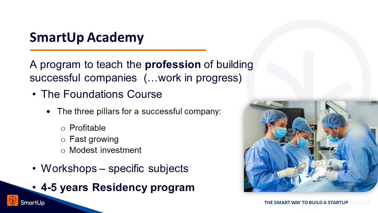 So we started SmartUp about three, four years ago. And the idea is to teach entrepreneurs, people who want to be entrepreneurs, people who are in SmartUp companies, the profession of building successful companies.