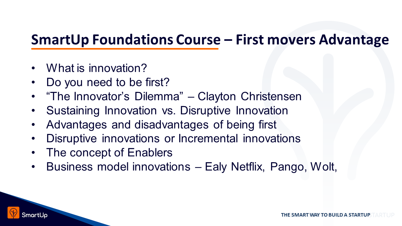 But it’s important to think about it all the time and say, how can I do it better today than I did yesterday? How can I do it better now than I did last month? If you keep thinking about incremental improvements, you’ll be surprised, looking backward at how far you have gone. It’s never done in a disruptive way. Wow. I solved all the problems in the world. You never solve all the problems in the world. It’s all about incremental improvements. And I will also give you their intro to business models, which is a whole big subject. Okay. The following subject is going to be first mover advantage. So a lot of you truly believe that being first to the market is a huge benefit. Wow. I have this invention. Nobody ever thought about it.
