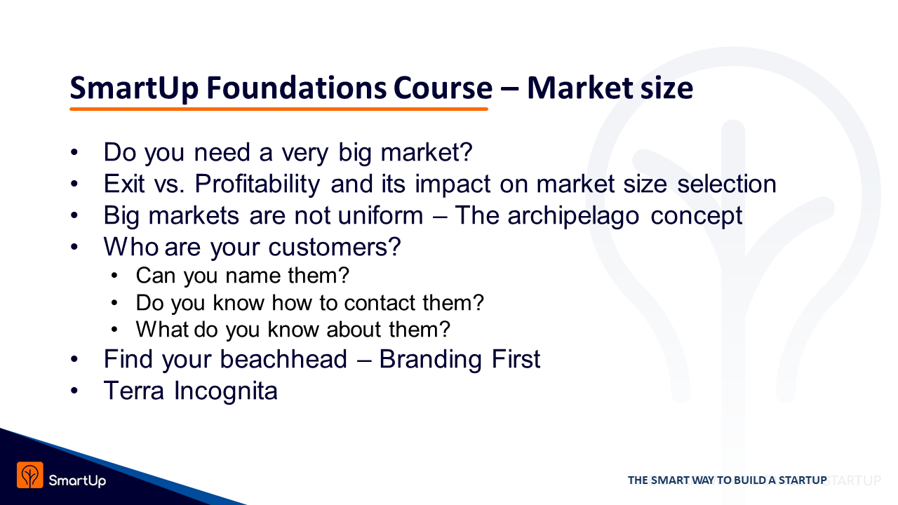 So the team you build, remember all the Parkinson law and the Peters law and all of that stuff? This is the most important thing you’re going to do. And you don’t need to show to investors that you know, okay, I have the full team, blah, blah. You really need to think very carefully. Who do you need to hire and what is it worth for you? The markets you target? Do you really want to go after a huge market or you want to have a much smaller still, big enough to make you profitable, but a much smaller slice of a big market that is easier for you to penetrate? And I will explain when we come to branding how do you choose that? You see, you also need a boss that keeps you in track. That’s why she is the CEO.