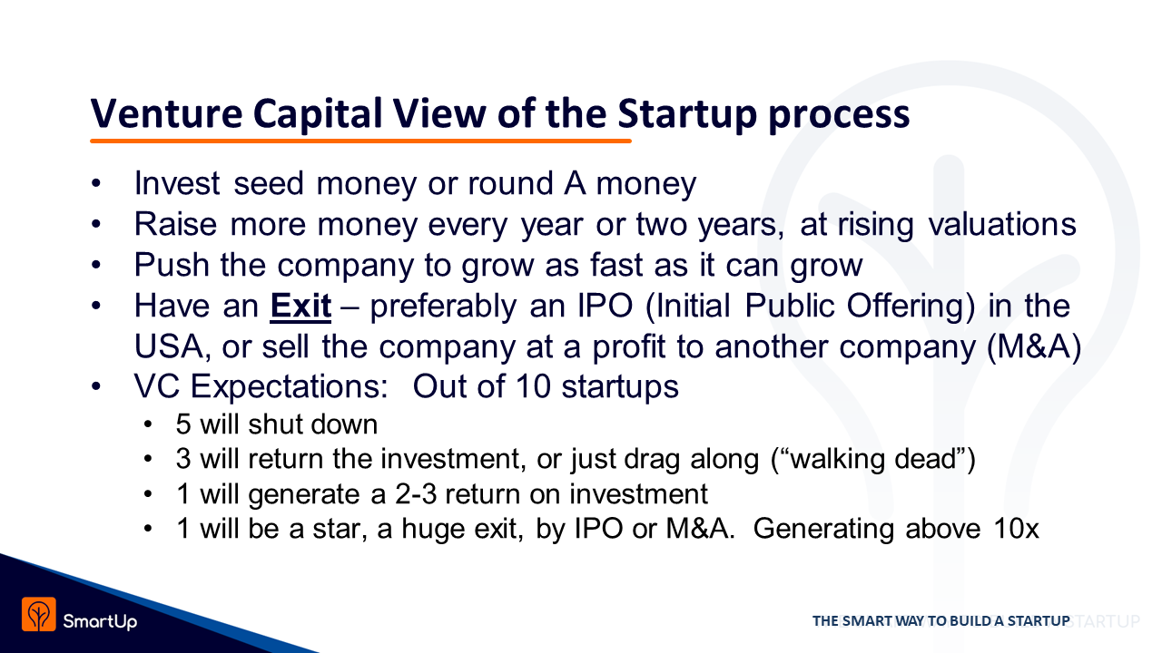 You know, the famous story of Mark Twain, that when he was 16, he realized that his father is an idiot. Total idiot. Doesn’t know anything. And when he reached 21, he was surprised how much his father learned in five years. So the same in here, you know, come 2022, and everybody’s talking about profitability. Duh. You know, obviously, if you have a company that is losing money, you are at risk. So how do they work? What is the process? Usually they start investing in rounds. So they invest seed or round a, depending on the terminology. Now they talk about pre seed. Soon it will be pre germ. I don’t know what. All kinds of names doesn’t matter. But they want you to raise money every two years or so. Every year or every two years. We will talk about it later.