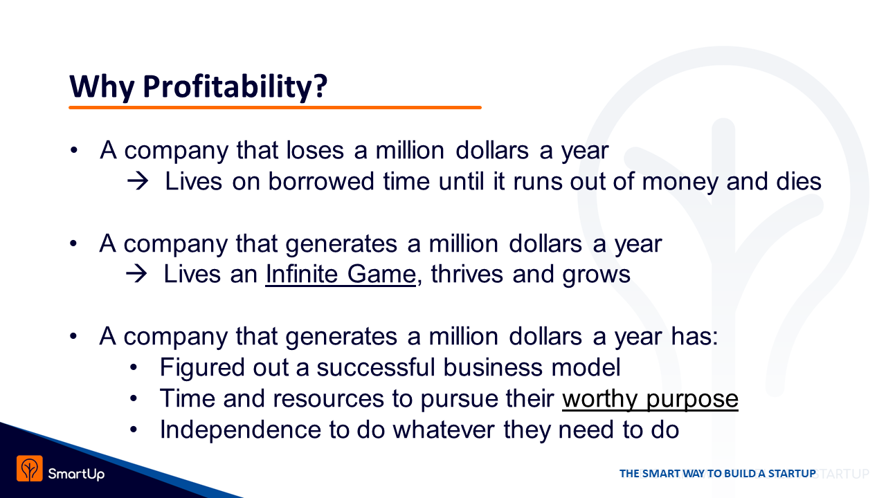 So I’ll ask you a question. What is the difference between a company that generates a profit of $1 million a year and a company that loses a million dollar a year? What’s the difference? Yeah, I was waiting for the 2 million. Thank you so much. He knows the answer. So he was just a chateau. All right. A company that loses a million dollar a year lives on borrowed time. So you can calculate how long they can live. If they have $3 million in the bank, they will live for three years when the money runs out, dead. A company that generates a million dollar a year leaves an infinite game. It thrives and grows. Now, you understand how I connect the infinite game with money.